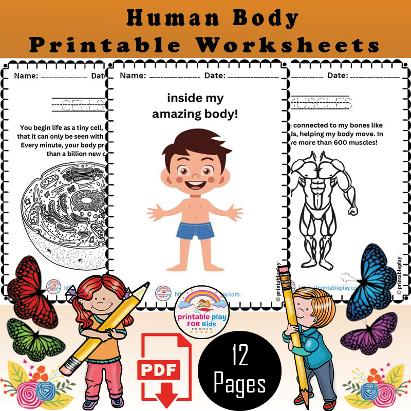 Even young kids are curious about their body and how it works. These super cute, free printable Human Body Printables readers are  no prep, pages for children to color, read, and learn about their bodies. Use these human body worksheets to teach kindergarten, first grade, 2nd grade, 3rd grade, 4th grade, 5th grade, and 6th grade students about their bodies. We’ve included human body systems worksheets pdf plus the heart,  muscles, brain, bones, stomach, bladder,  and more. This science worksheet is a fun activity about  the human body for kids. Simply print the human body worksheets pdf  and you are ready to learn!