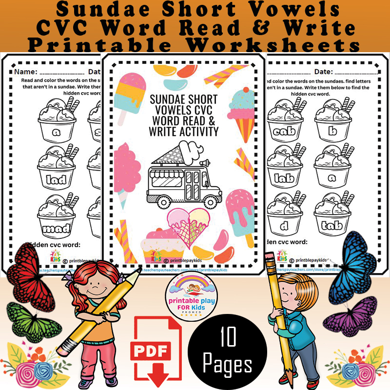 Sundae Short Vowels CVC Word Read & Write ActivityKindergartners will have fun with this summer activity for kindergarten where they will do a fun, hands-on cvc word activity. In this cvc words activity, children will find letters, read simple words, and find the hidden code they will write the short vowel they uncovered. Simply print cvc worksheets for kindergarten pdf file and you are ready to make some sundae as you sneak in summer learning.